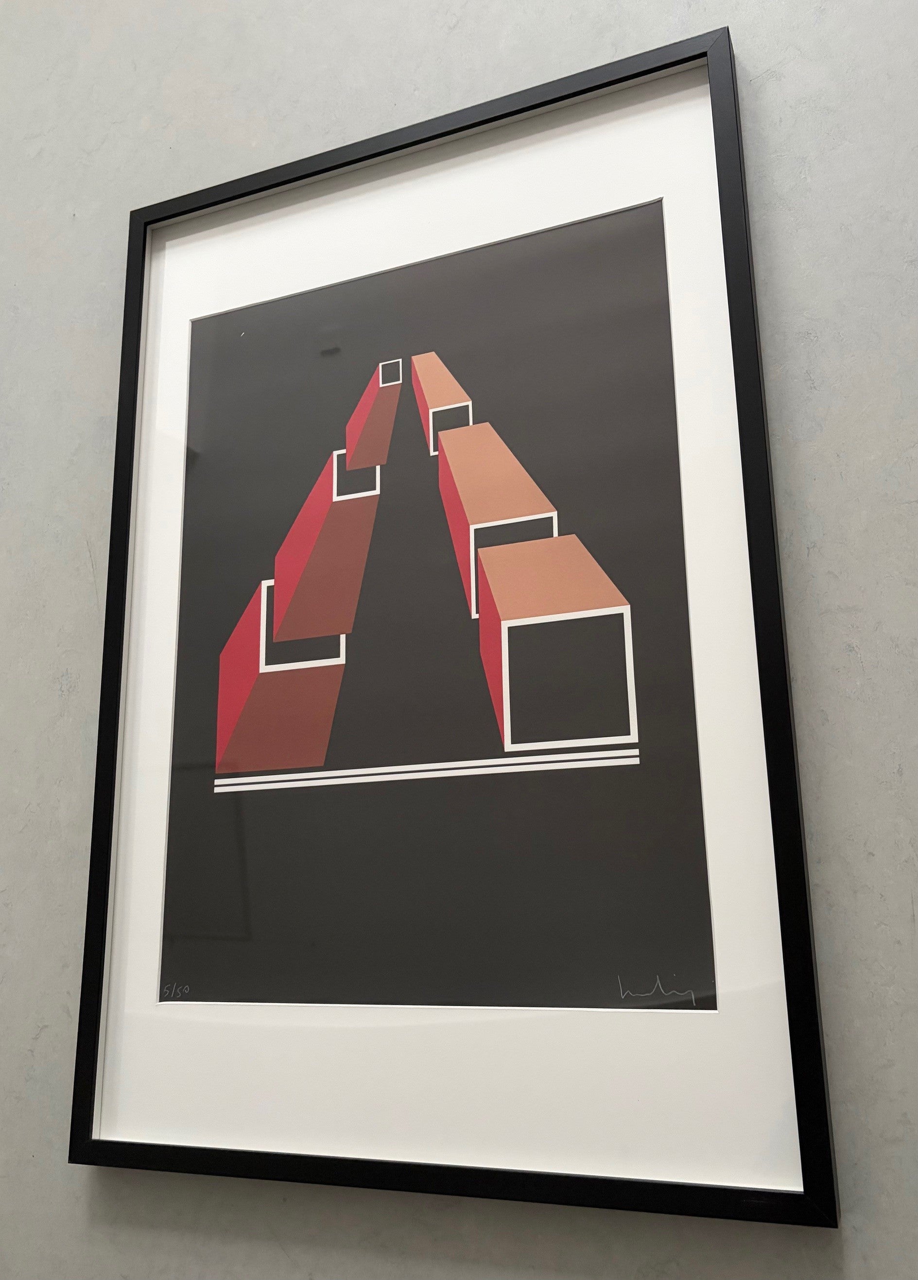Josep Molins (1952) is een Spaanse kunstenaar geboren in 1952 die bekend staat om zijn minimalistische en geometrische beeldtaal. zijn werk richt zich op optische illusies, perspectief en architectonische vormen, vaak geïnspireerd door mathematische constructies zoals de Penrose-driehoek. Molins werkt voornamelijk met lithografieën en gelimiteerde edities, waarin hij strakke lijnen, kleurvlakken en driedimensionale effecten combineert.