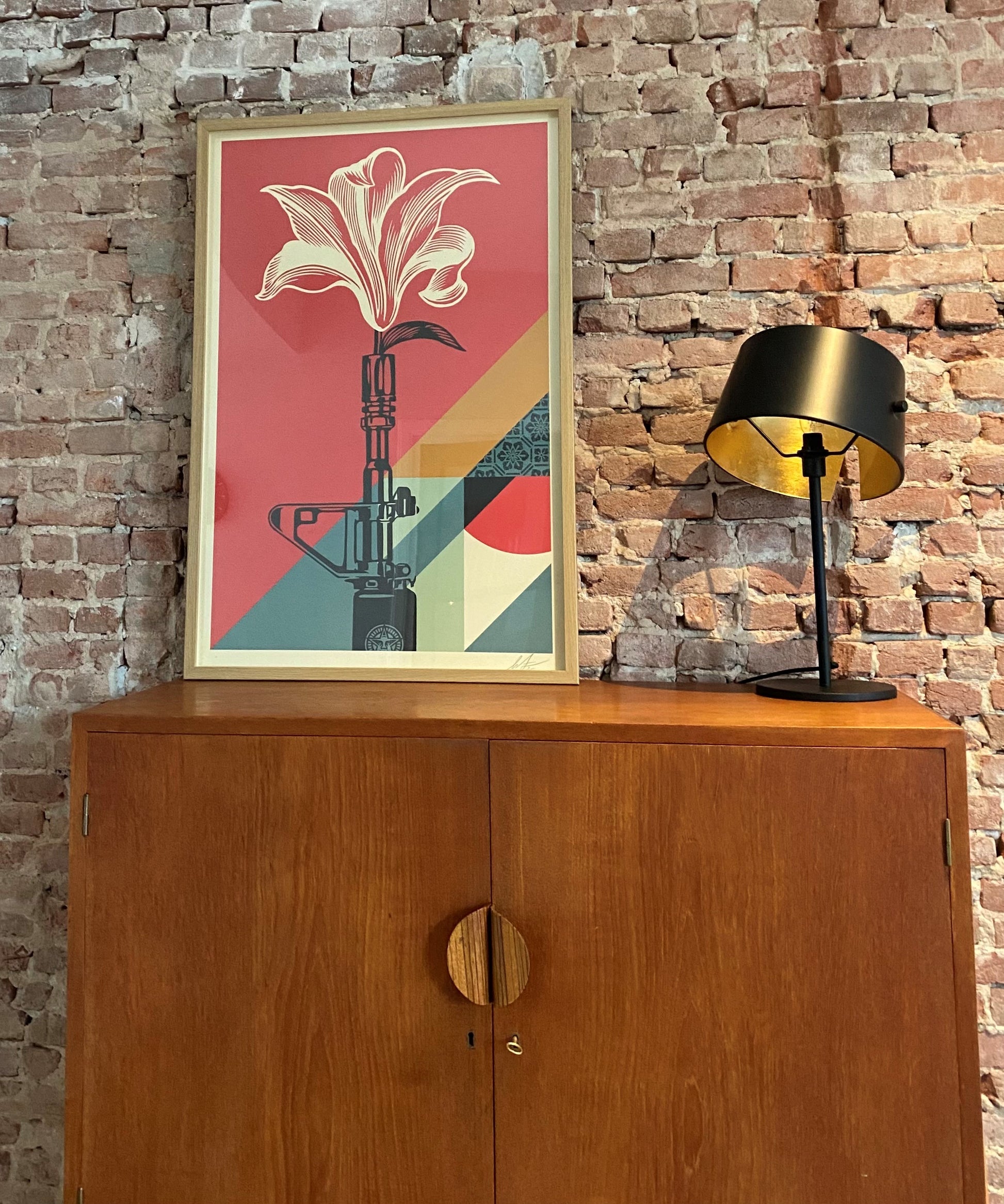 Shepard Fairey is een gerenommeerd Amerikaans kunstenaar en ontwerper die wereldwijd bekend is onder het pseudoniem "Obey". Fairey, geboren in 1970, verscheen in de jaren tachtig in de kunstscene en trok de aandacht met zijn gedurfde en politiek geladen werken. Zijn werk wordt gekenmerkt door een kenmerkende stijl, waarin zeefdruk-, collage- en schildertechnieken worden gecombineerd, beïnvloed door propaganda en oorlogsposters.